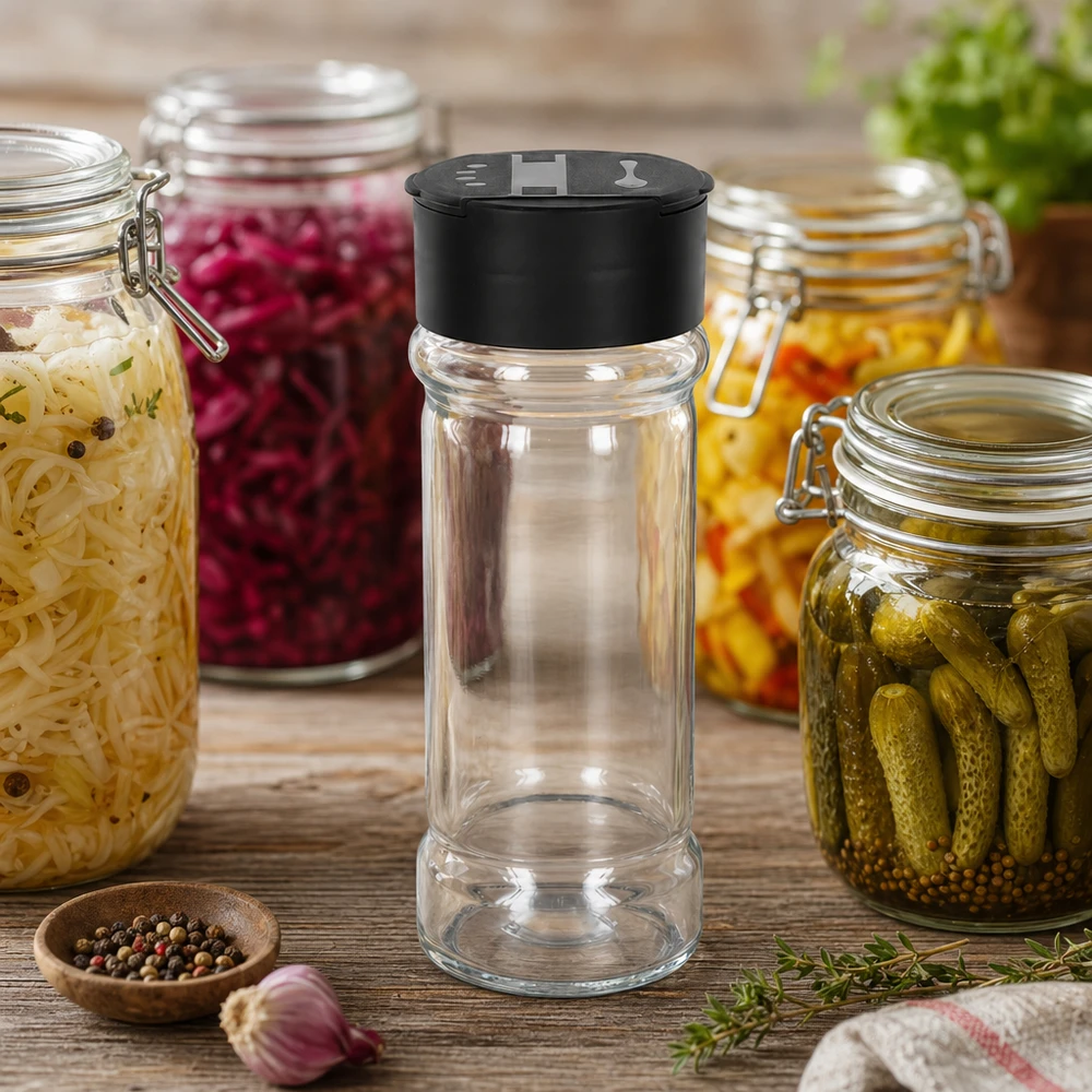 - Andere benamingen: Strooiglazen, standaard specerijenglas, standaard strooiglas, kruidenglas