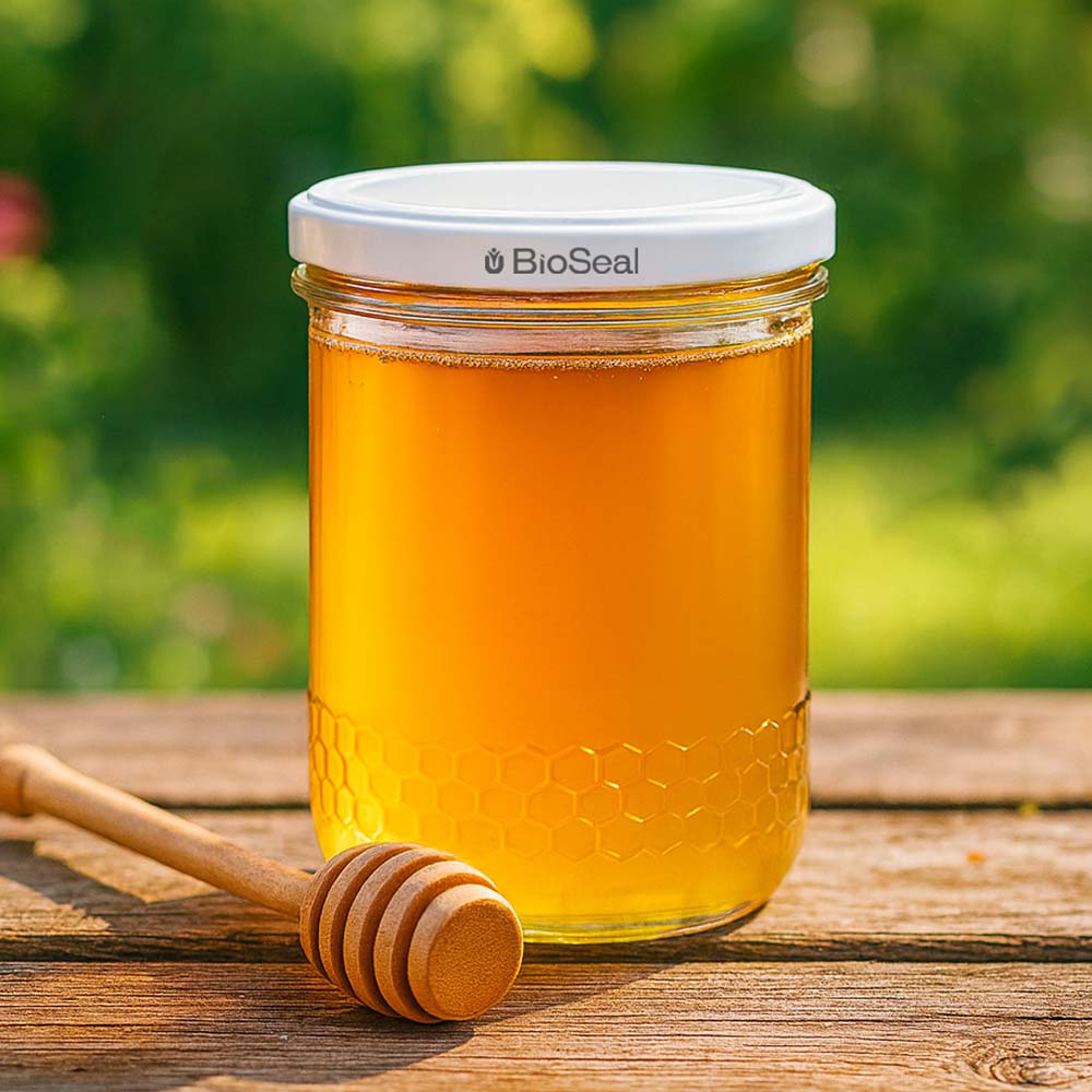 Productinformatie "Honingpot 560 g met witte BioSeal UNiTWIST-deksel"