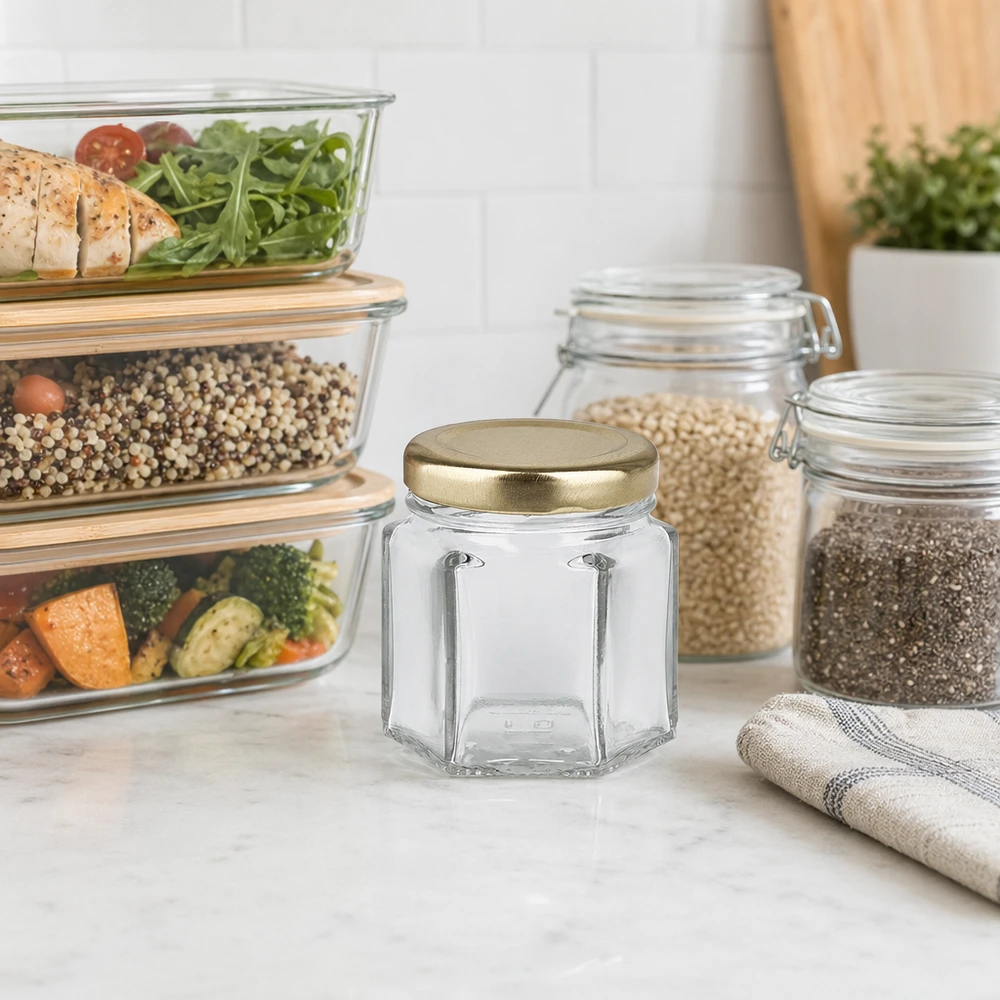 47ml hexaglas met BasicSeal deksel goud UNiTWIST
