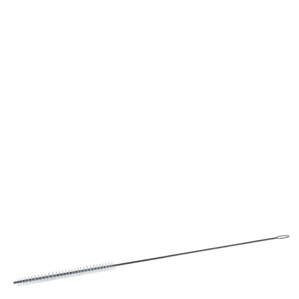 Reinigingsborstel rond maat M met oogje ⌀6mm. Ideaal voor het schoonmaken van pipetten en trechters. Gemaakt van nylon haren. 27 cm totale lengte.